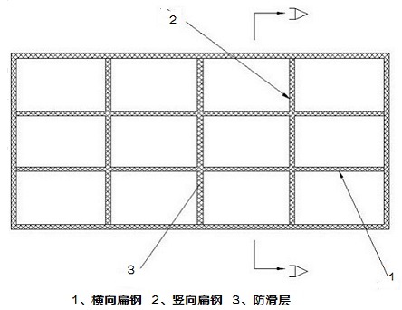 鋼格板一般是橫、豎扁鋼正交焊接制成,具有美觀、防滑、通風性好、采光好等優點,主要用于吊頂、踏板、排水井蓋等。市場上的鋼格板在用來做踏板使用時,存在一些問題,比如經過一段時間踩踏后,鋼格板表面磨損變得的光滑,降低了防滑性易使人跌倒,另外通常是在排列整齊的豎向扁鋼之間逐段焊接橫向扁鋼,這種制作方法耗用材料多,成本高,且鋼格板只靠焊接作用連接而不夠穩固。