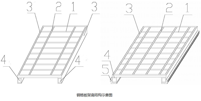 為了解決實(shí)際應(yīng)用中存在的技術(shù)問題,通過在鋼格板底部設(shè)架高管件,滿足了不同安裝高度要求的鋼格板的安裝操作。架高管件為一個(gè)方形鋼管或者兩個(gè)架高管件,兩個(gè)方形鋼管上下疊加焊接而成;架高管件分別橫向焊接在鋼格板兩端的底面。兩個(gè)架高管件沿其長(zhǎng)度方向布置。方形鋼管的橫截面為正方形結(jié)構(gòu),從而滿足了不同安裝高度要求的鋼格板的安裝操作,提高了鋼格板的適應(yīng)性。