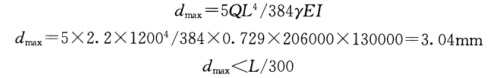 b)踏板承受2.2kN/m均布荷載的最大受彎撓度