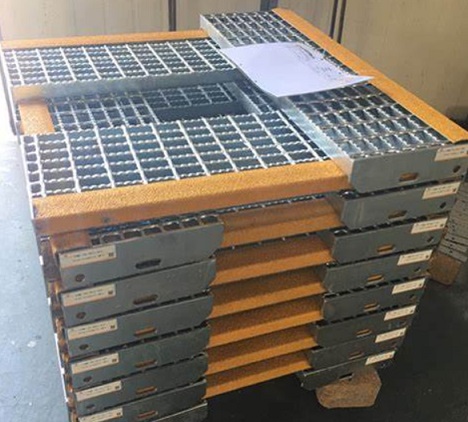 鋼格板樓梯踏步板應有防滑突緣,突緣應貫穿整個踏板,突緣寬度不小于25mm,通常為30mm。突緣應有防滑功能,可以是花紋鋼板冷彎角鋼,也可以是帶有防滑突臺或防滑砂條的鋼板制成的構件。突緣應能起到樓梯踏板級間視覺標記的作用,警示上下人員的踩踏安全。突緣是踏板負載區(qū)域的前沿,是承受荷載的主要部位,應能增加踏板前沿的負載能力。
