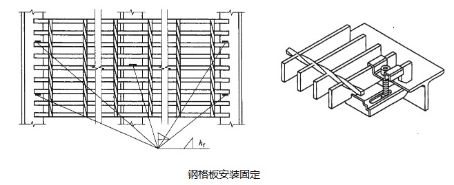 為了避免鋼格板構(gòu)件墜落,鋼格板的安裝可采用焊接和其他方式進(jìn)行固定。鋼格板安裝后應(yīng)不能移動(dòng)或脫離支承架,鋼格板承載扁鋼方向兩端在支承架上的支承長(zhǎng)度每端不小于25mm。所有鋼格板構(gòu)件應(yīng)牢固地固定在支承結(jié)構(gòu)上,不可依賴于相鄰構(gòu)件防止橫向移動(dòng)。任何相鄰構(gòu)件的移除不應(yīng)影響剩余構(gòu)件的安全固定。